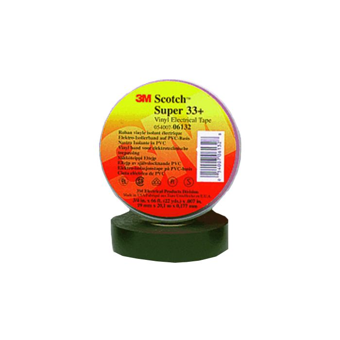 Scotch® Super 33+™ Vinyl Electrical Tape is a black, 7 mil premium grade, all-weather vinyl electrical insulating tape with an aggressive adhesive and elastic backing that enables it to easily conform to irregular surfaces for water-resistant electrical and mechanical protection, yet will not ooze or melt in high temperatures.