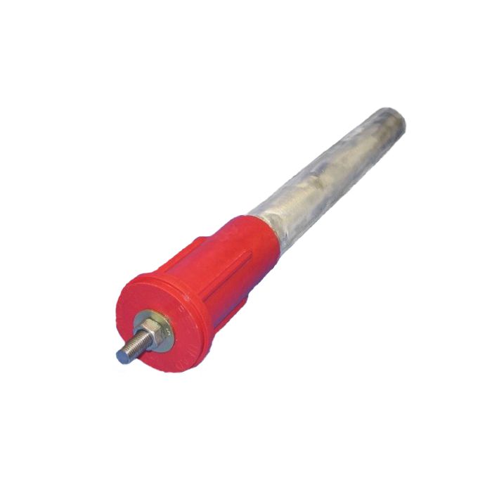 Popular anodes sizes are any 3-inch diameter sacrificial anode, typically aluminum, in 30-inch and 60-inch lengths. While the anode may be electrically continuous to the tank through the Red-Cap, to ensure positive continuity, it is recommended that a cable is attached from the provided ¾” threaded core directly to the vessel.