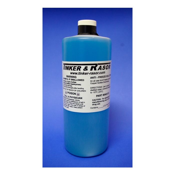 Anti-free solution is used in portable, copper-copper sulfate reference electrodes in cold weather locations to prevent freezing and breakage of the reference electrode. Available in a 32 ouce bottle, this product replaces standard copper sulfate crystals mixed with water.