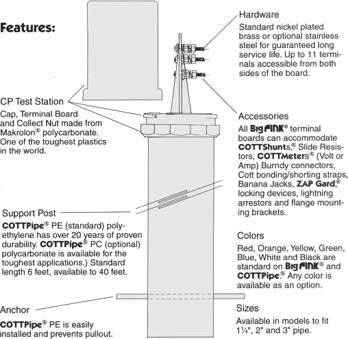The Big FINK ® cathodic protection test station is a field proven, high strength, maintenance free terminal for monitoring electric currents and potentials. Since 1976, the Big FINK ® cathodic protection test station has been utilized worldwide by gas, oil, chemical and water pipeline companies.