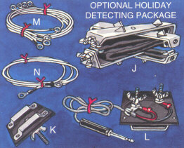 A. Receiver w/ batteries (6 "C" cells) B. Transmitter w/ batteries (6 "C" cells) C. Ground plate, direct connect cable D. Headphones, stereo E. Ground cable, 30' F. terminal board, pipe & ground G. Cable, transmitter to pipe, 6' H. 45/90 adapter I. Carrying case X. Instruction manual (not shown)