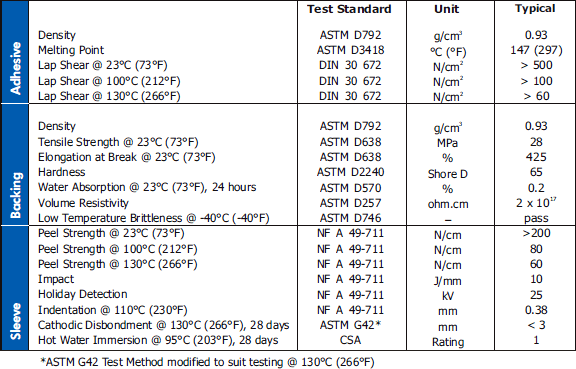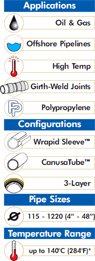 Unique Adhesion Technology: Canusa's unique adhesive technology allows for lower installation pre-heats and superior bonding to polypropylene coatings. The adhesive has been formulated to bond directly to the factory applied 3LPP coating while the epoxy is applied to the steel only. The result is a superior bond to the substrate and quicker application.