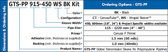 The Canusa-CPS GTS-PP system provides excellent adhesion and superior corrosion protection to polypropylene coated pipelines. GTS-PP has been designed with a patented unique cross-linked polypropylene backing and modified polypropylene adhesive. The combination allows sleeve recovery and bonding to polypropylene mainline coatings. Lower preheats are required versus other systems and superior bonding is achieved without damaging the factory applied 3LPP coating during installation.