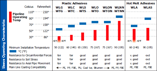 Choose your sleeve based on Operating Temperature and Characteristics listed below.