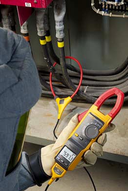 Compatible with iFlex flexible current probe to expand the measurement range to 2500 A ac while providing increased display flexibility, ability to measure awkward sized conductors and improved wire access.