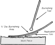 Step Two: Burnish the Film Apply moderate pressure with the burnishing tool all over the circular cut-out in the tape. When done correctly, the burnished area will appear as a gray circle. A "pebble grain" appearance indicates excessive burnishing pressure. Remove the tape. The replica is now ready for measurement.