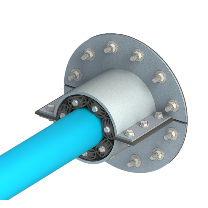 This wall sleeve is unique in that it can be installed after cement has been poured, whether that is 5 days or even 5 years. It also installs quickly and easily around existing piping in retrofit projects. The External Mount Split Wall Sleeve can also be used to backup or replace existing wall penetrations which have inadequate sealing capability. These wall sleeves, combined with our Innerlynx® modular mechanical seals, can withstand up to 40 psig or 92 feet of head pressure. All External Mount Split Wall Sleeves come with anchor bolts and hardware for installation onto your pipe and concrete form. Material types offered: Gal-vo-plast® Steel, Stainless Steel, or Plain Steel.