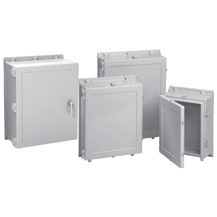 Fiberglass enclosures offer a range of sizes and options. These enclosures feature padlockable polyester latches, or the exclusive PowerGlide Handle with 3-point latching, for ease of access with increased security.