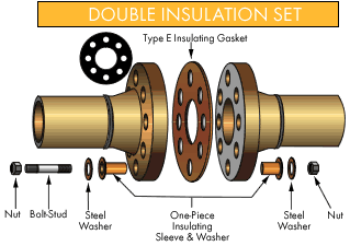 INSULATING SLEEVES AND WASHERSInsulating sleeves manufactured of high density polyethylene and Mylar are available in a full range of sizes. Also available are one-piece integral sleeves and washers which are made of Minlon, providing superior compression strength. Integral sleeves are available in sizes through 1-1/2". A variety of high temperature sleeves are also stock items. With each insulating washer, a 1/8" thick S.A.E. electro-plated steel washer is provided to protect the insulating washer from damage by the nut. Advance flange insulation sets are available in single washer or double washer kits.