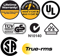 EN 61010-1 to 1000 V CAT III, 600V CAT IV