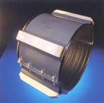 Model S12G-2: Stainless Steel casing isolator with a 12" (305 mm) wide steel band and 2" (50.8 mm) wide glass reinforced runners.