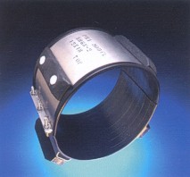 Model C12G-2: Coated Steel casing isolator with a 12" (305 mm) wide steel band and 2" (50.8 mm) wide glass reinforced runners.