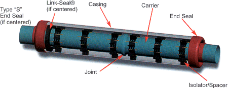 - Accommodates plastic, ductile iron and steel carrier pipe (not suitable for concrete pipe).