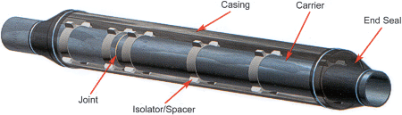 An isolator/spacer should be placed within 2' (0.6 m) on each side of a coupling or joint and within 1' (0.3 m) of each end of the casing. For more details on spacing, contact CCP.