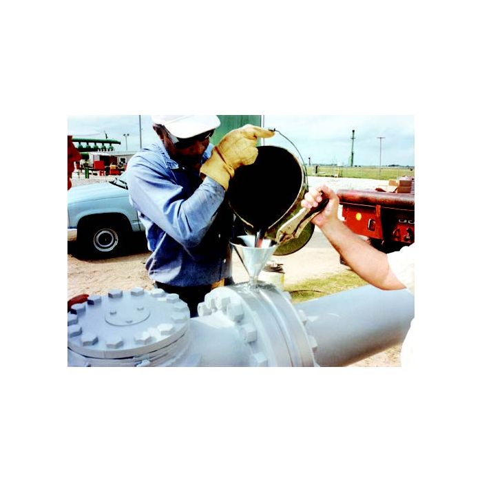 Pour Innercoat through the funnel slowly and continuously until the Innercoat has fully filled the flange gap. The level of Innercoat will decrease as it fills the voids in the flange. Continue to top-off flange gap until the level of Innercoat no longer decreases.