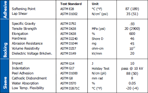 - Heat-shrink corrosion protection of buried and exposed steel pipelines operating at up to 60°C (140°F).