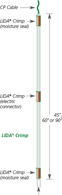 LIDA® ONE is a 1" diameter titanium tube with a precious metal oxide coating. This mixed metal oxide is a crystalline, electrically-conductive coating that activates the titanium and enables it to function as an anode. When applied on titanium, the coating has an extremely low consumption rate, measured in terms of milligrams per year. As a result of this low consumption rate, the tubular dimensions remain nearly constant during the design life of the anode - providing a consistently low resistance anode.