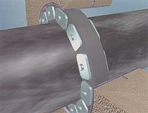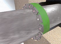 4. Slide belt assembly into annular space. For larger size belts, start inserting Link-Seal modular seal assembly at the 6 O'Clock position and work both sides up toward the 12 O'Clock position in the annular space.