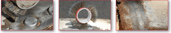 The bristle blasting process is ideally suited for spot-repair applications and can also be applied to larger surface areas where the use of other metal cleaning processes may be prohibitive. The process provides an efficient means for removal of corrosion, mill scale, defunct protective coatings, and for post-weld cleaning operations. These applications frequently arise in a wide range of fabricating and infrastructure-support operations, such as onshore / offshore well drilling installations, bridge refurbishment, and fabrication or repair of marine vessels.