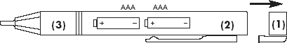 Always hold unit by its body (2). Keep fingers away from the tip (3). Remove end cap (1) to replace batteries.Simply touch the plastic tip to a connection point or move it along an insulated wire. If AC voltage is present, the tip glow red, and you will hear an audible tone. The tip will emit a steady glow in the presence of AC line voltage. It will flicker in the presence of static electricity. The audio buzzer will not react to static electricity.