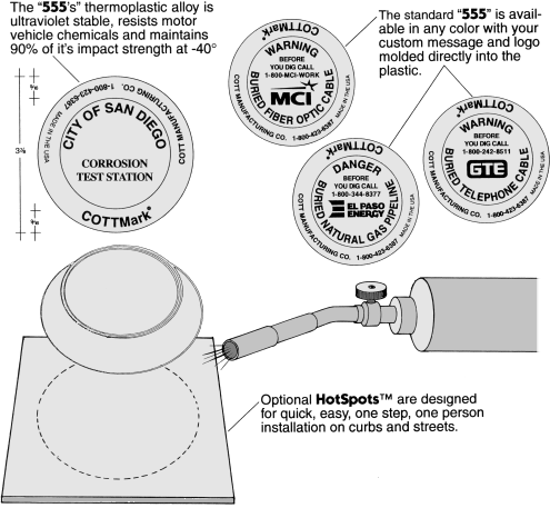 The COTTMark® Model 555 is a surface mounted, high strength, high visibility right of way marker for all buried cables and pipelines.
