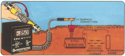 The Tinker & Rasor Model CPV-4 Cathodic Protection Voltmeter is a revolutionary instrument for measuring DC structure to earth potentials of various buried or submerged metallic objects. Powered by an ordinary 9-volt battery, the Model CPV-4 gives an immediate reading in large ½ inch (12.7mm.) liquid crystal display numerals.