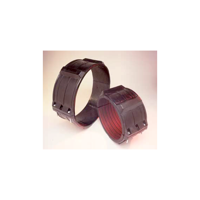 Polycarbonate is used in the manufacture of the Hi-Temp isolators/spacers giving them the ability to be used for applications that may reach 280- degrees F. (138° degrees C.). In addition to heat resistance, they also offer excellent electrical isolation, high abrasion resistance and low coefficient of friction for a wide variety of double containment carrier/casing pipe applications. Light in weight and easy to handle during installation, Model HT casing isolators also feature ribbed inner surface that prevents slippage and guards against carrier pipe coating damage. The outer surface may include any one of several molded runners to accommodate 2" (50.8mm) x 4" (101.6mm) or larger carrier/casing differentials.