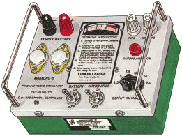 PD-B OscillatorIn order that a maximum of energy can be transferred from the oscillator to the pipe, the output of the oscillator is provided with taps so that voltages of 2.5, 5, 7.5, 15, 50 and 100 Volts are available to match the load. An interrupter is provided to make the signal more easily recognized.The oscillator provided with the set has been designed to use the latest developments in this type of instrumentation. A signal of 750 Hz is generated by using a power transistor switching circuit. This arrangement eliminates troublesome vibrators, buzzers or other moving part elements. The transistor oscillator converts low voltage (12 V) DC to stable audio frequency AC directly. By a highly efficient method, the input current to the oscillator is only 1.7 amperes for a full output of fifteen watts, a conversion efficiency of better than 80%.