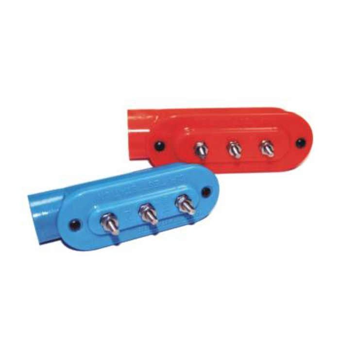Tinker & Rasor Models T-2 and T-4 CP are "Condulet" style Cathodic Protection Test Stations. Model T-2 fits existing NPT threaded 3/4" OD riser pipe. Model T-4 fits existing NPT threaded 1" OD riser pipe. The test stations include three (3) external binding posts, which are set on one-inch centers to accommodate accessories such as bonding Z straps and shunts. Models T-2 and T-4 may also be customized to include more binding posts or banana plugs. Seven colors are available from stock.