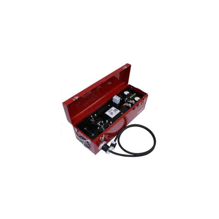 The Farwest model TR-3 air cooled cathodic protection test rectifier, manufactured by Universal Rectifiers, Inc., is a portable cathodic protection power supply used for a variety of CP field test scenarios. Provided with a 60 volt, 30 amp maximum DC output in 18 steps of adjustment, and solid state variable interrupter, the TR-3 is capable of providing a wide range of portable DC power.