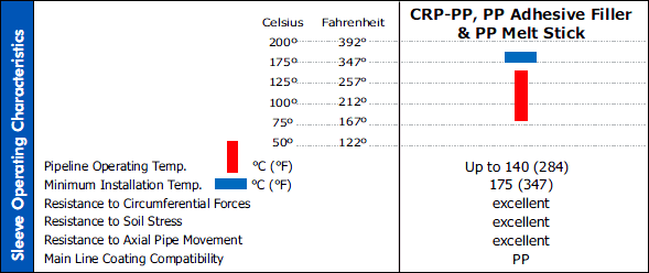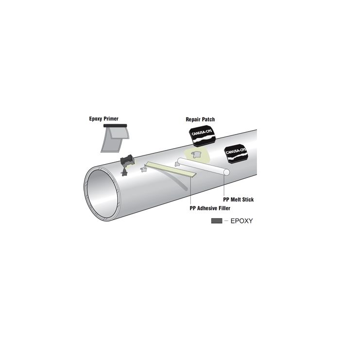Canusa's coating repair products (CRP) for polypropylene (PP) coated pipelines provide excellent adhesion and shear resistance at high pipeline operating temperature. The polypropylene repair patch has been uniquely designed to be fully compatible with the polypropylene pipe line coating. The Adhesive Filler is also made from polypropylene for maximum compatibility. These aspects ensure compatibility throughout the range of Canusa products offered.