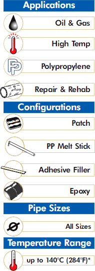 PP Melt Stick is used to fill larger damaged areas in the coating prior to patch installation or as a repair for minor coating damage. Once installed, the Melt Stick provides excellent resistance to corrosion, abrasion and shear during pipeline construction and while in service.