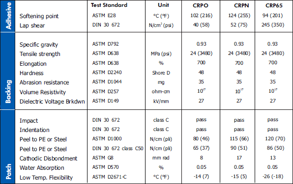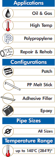 Canusa-CPS repair products for polypropylene coated pipelines provide excellent adhesion and shear resistance at high pipeline operating temperatures. The polypropylene repair patch has been uniquely designed to be fully compatible with the polypropylene pipe line coating. The Adhesive Filler is also made from polypropylene for maximum compatibility. These aspects ensure compatibility throughout the range of Canusa products offered.