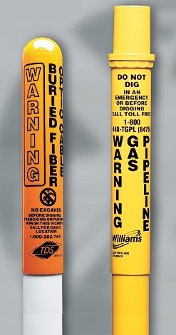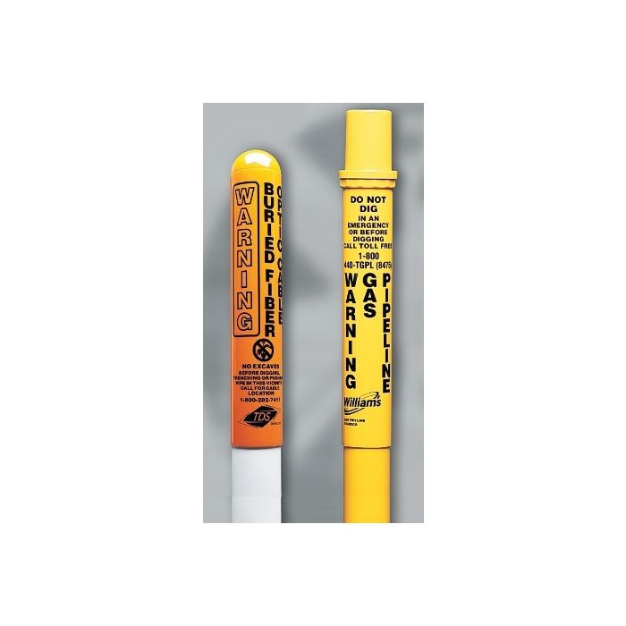 Highly visible, cylindrical marker posts for cable and pipeline marking system.