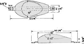 H-22A:Popular anode weighing about 22 pounds. Contains two cast-in 1/4" x 1 1/2" galvanized steel straps that are easily welded to the steel hull structure. A Plastisol coating is available as an optional current barrier.