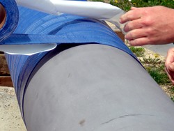 Remove white release liner and apply adhesive part to the surface by wrapping under tension. Maintain minimum overlap of 10% or 0.5 inch.