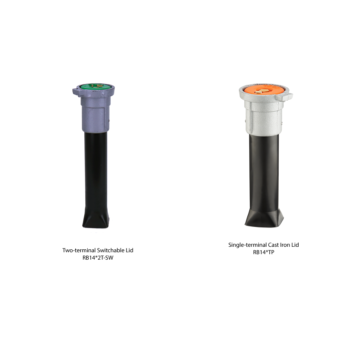 Single-terminal Lid: provides external direction connection point (no ground rod wire connection point)