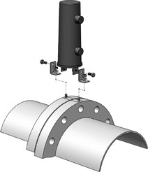 The SSD or OVP2 can be mounted across an insulated flange using an existing flange bolt, usually at the top center position on the flange (See Attached Drawings). In order to install these devices using existing flange bolts, the flange must have a machined outer face in order to mate to the bus bars.