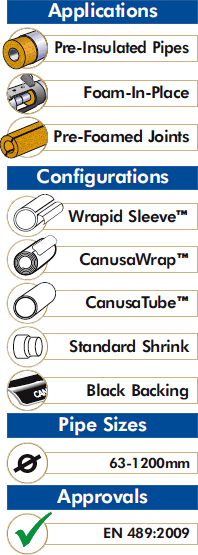 The Canusa-CPS Superseal™ Sleeve is a high-performance heat-shrinkable product for the sealing of pre-insulated pipe joints. It is specifically designed for pipes and casings made from high density polyethylene, for district heating applications where soil stress and pipe movements are common.