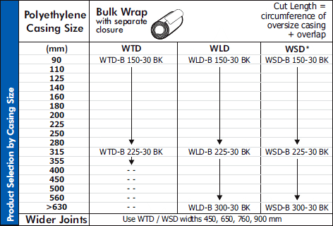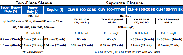 Flexible & Reliable Installation: Superseal™ products are available in three different configurations for flexibility of installation. 1) The patented one-piece configuration (K) incorporates a pre-attached closure strip that has been factory applied resulting in quick and reliable field installation. 2) The bulk wrap (W) configuration is supplied in a bulk roll, with separate closure seals, providing just-in-time customized lengths. This flexibility results in reduced inventories and cost savings on the job site. 3) The tubular (P) sleeve consists of a unique configuration that has been factory constructed, resulting in quick and reliable field installation. The sleeve is supplied in a sealed bag to prevent contamination.