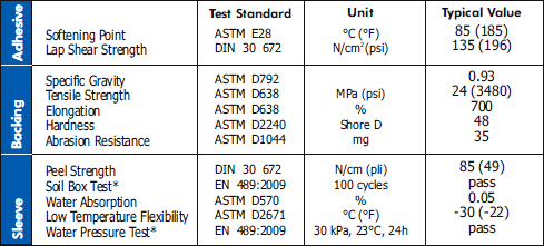 Long-Term Sealing Protection: Once installed, Superseal™ products have excellent structural integrity, and provide the substrate with durable protection against abrasion and chemical attack. The high performance crosslinked backing provides the superior abrasion resistance and mechanical strength required for high stress environments. In combination with a high shear resistant adhesive, Superseal™ provides excellent resistance to soil stress, temperature cycling effects and pipe movements, resulting in an effective long term seal.