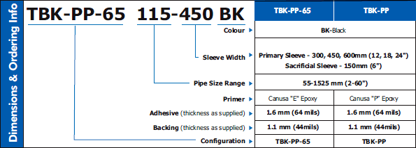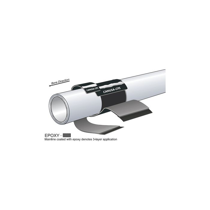 * Epoxy Kit (required) uses the standard 170 mL Canusa E Primer. Kit and assumes a 30 mm (12”) cutback, a 0.25 mm (10 mil) epoxy overcoat thickness and a 0.15 mm (6 mil) mainline epoxy thickness covering (for 3-layer systems).