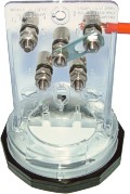 The Tinker & Rasor Model T-3 Test Station comes with standard rapid wire connection Binding Posts, as seen at right, below. There are other kinds of terminal connectors available, including Banana Plugs, as seen at right, above, with an exploded view of the Shock Guard. Terminal Connectors available include: