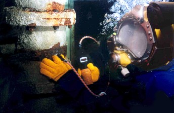 Metal thickness / wear checks on anchor chains, jetties, dock gates, piers and pilings.