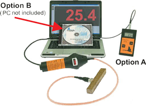 Option B Windows based software for datalogging and remote display. The umbilical is connected to the serial port of a PC (PC not included).