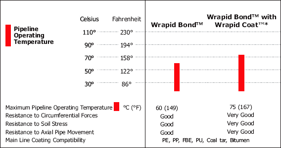 Wide Range of Applications: Wrapid Bond™ is ideally suited for a diverse range of pipeline applications including: coating repair on new pipeline construction; transition areas from above to below ground pipelines; special sections such as bends, tees, flanges, etc.; rehabilitation of existing pipelines.
