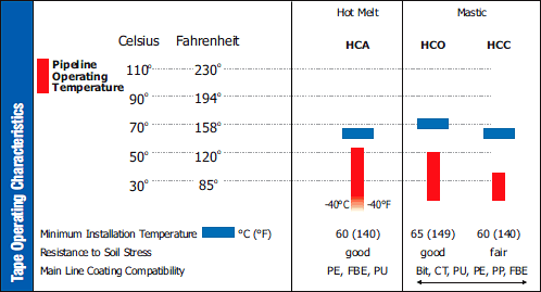 Easy Installation: The flexibility provided by the thinner tape dimension allows Wrapid Tape™ to effectively protect both conventional substrates such as circular pipe as well as irregular transitions such as elbows and risers. Upon the application of heat, the specially formulated adhesive flows into all surface irregularities, forming a protective barrier against corrosion.