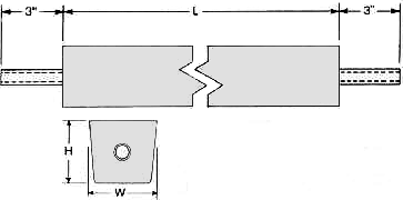 Anodes in this series contain two cast-in galvanized steel mounting straps (brass mounting straps are also available) or two cast-in cored holes on 6" centers.