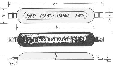 (AKA: M-48)Contains single longitudinal galvanized strap for welding to hull. Particularly suited for major ships, 10,000 DWT and upward. Farwest can add a mounting hole to each mounting strap.